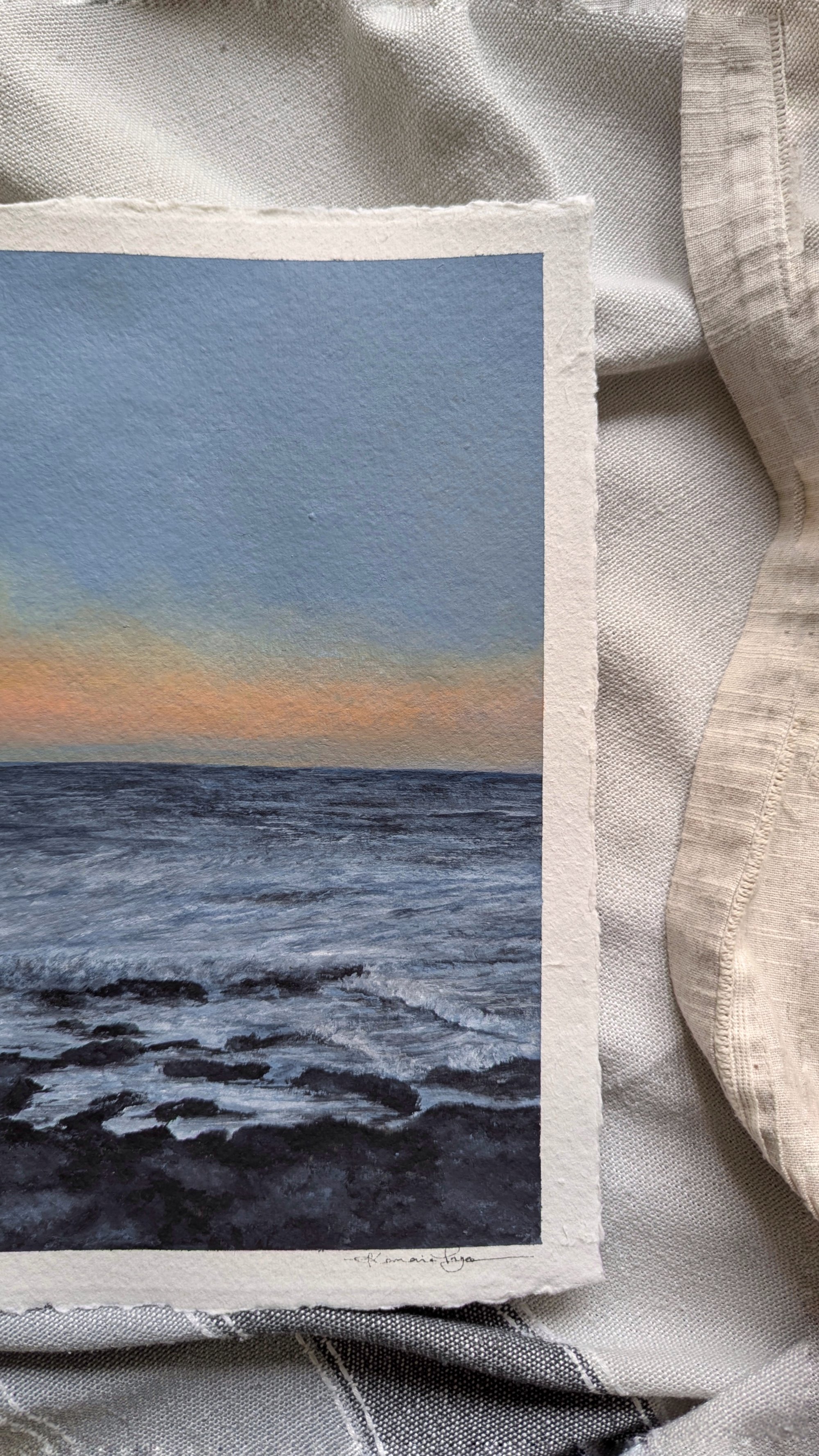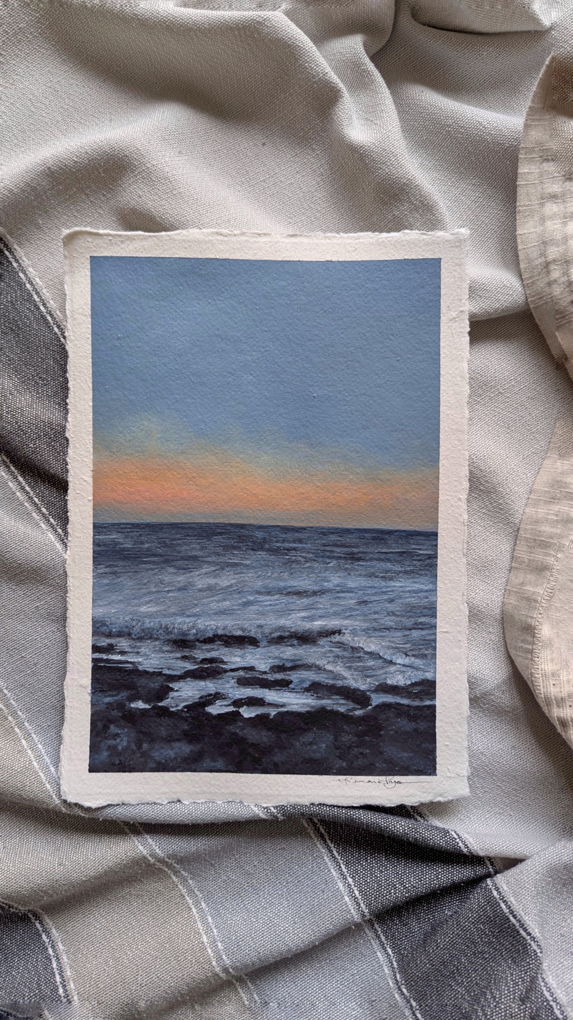 Original sunset seascape painting on handmade paper.